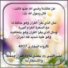 وقال رسول الله ﷺ: «الْماهِرُ بالقُرْآنِ مع السَّفَرَةِ الكِرامِ البَرَرَةِ، والذي يَقْرَأُ القُرْآنَ ويَتَتَعْتَعُ فِيهِ، وهو عليه شاقٌّ، له أجْرانِ.» (رواه البخاري ومسلم).